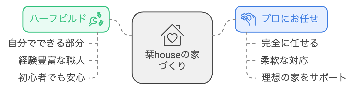 栞houseのハーフビルドは、お客様の家づくりへの想いを尊重することから始まります。
