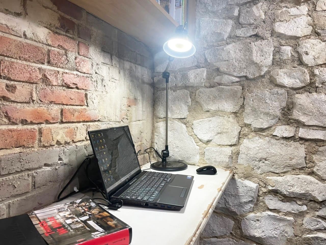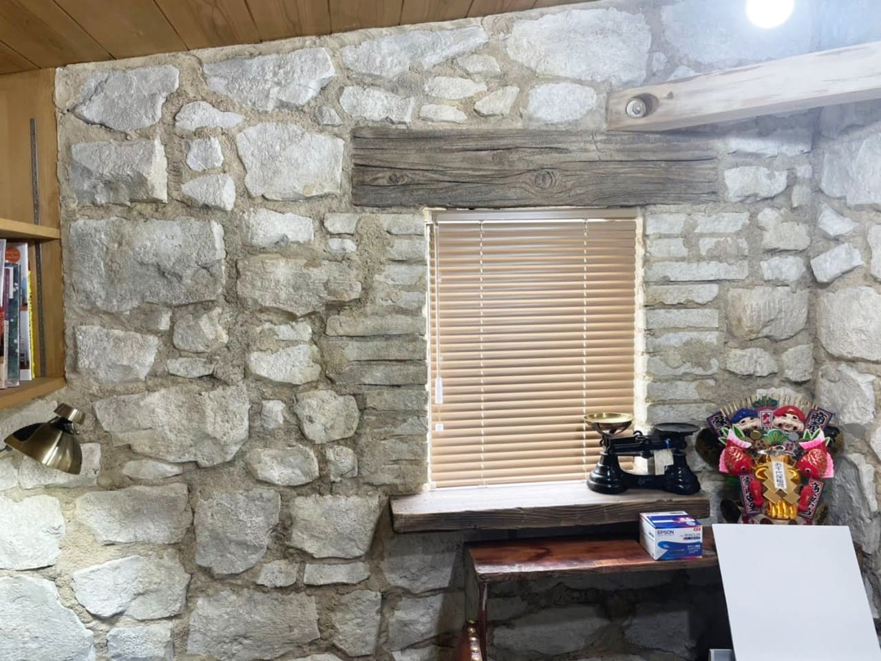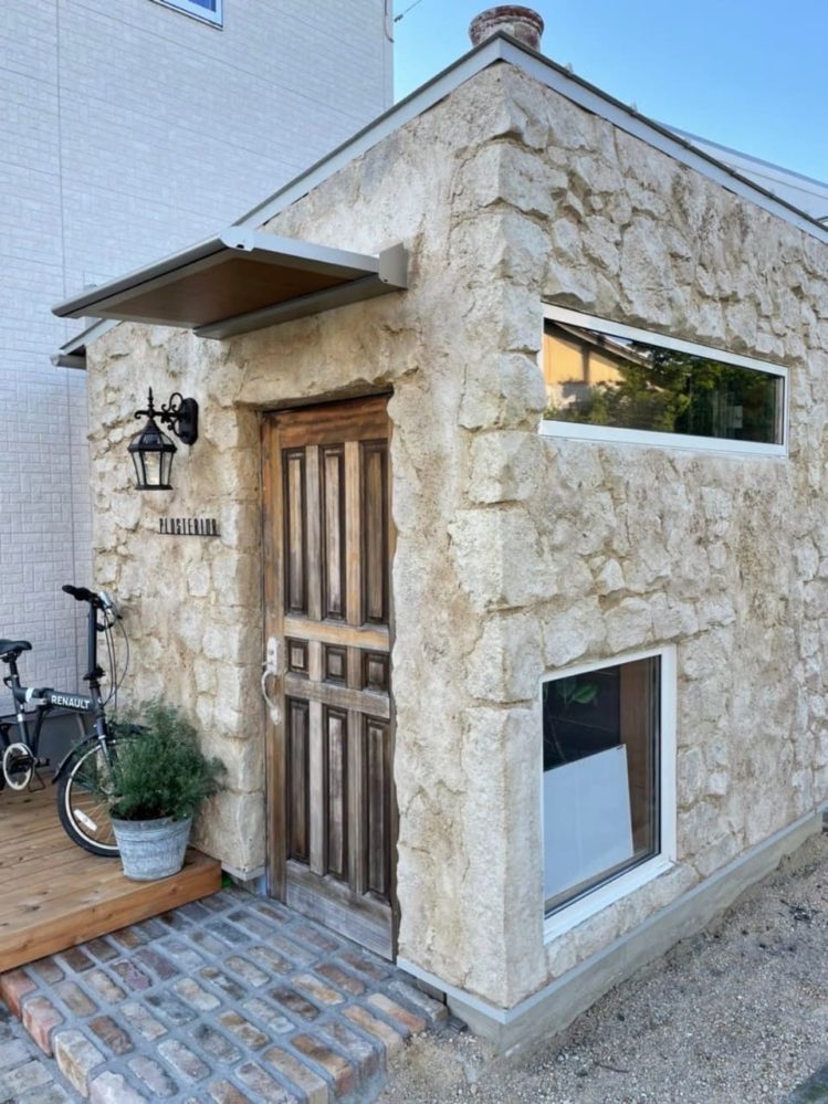 外壁・内壁はまるで本物の石やレンガを積み時代を重ねた様な見た目ですが、実は躯体は木造、外壁材は全てモルタルを塗り削り出したモルタル造形です。